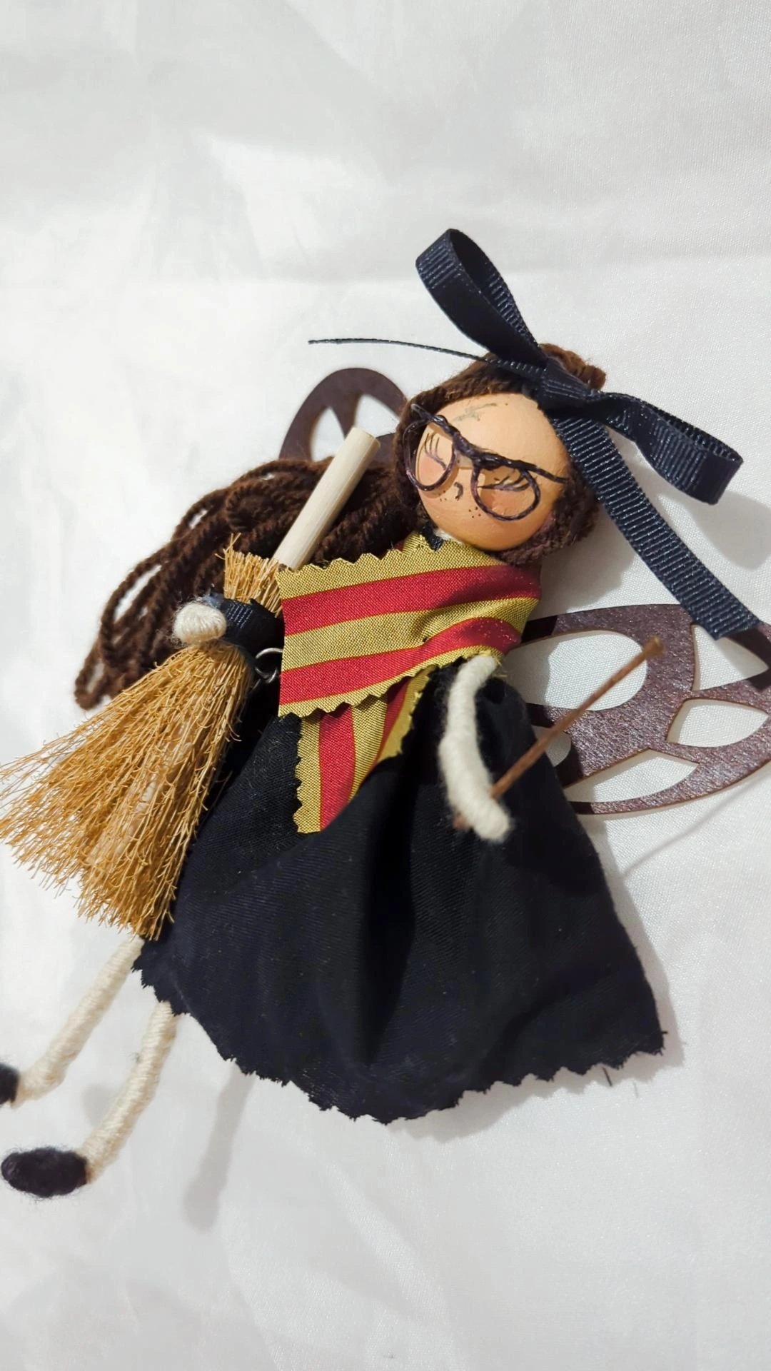 You also have the option of a black bow hair tie that is included in the price. Or for an extra £1.50 you have a black witches hair for that full Wizard Fairy look. Wand, scarf and broom included in the price!!
